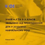 Зважаючи на це, МОН звільнило від проходження державної підсумкової атестації здобувачів закладів загальної середньої освіти 4-х і 9-х класів у 2020/2021 навчальному році.