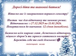 Адміністрація закладу повідомляє, що згідно зі структурою навчального року, зимові канікули триватимуть: